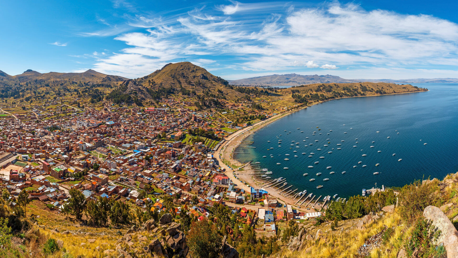 Sie verlassen Peru und fahren über die Grenze nach Copacabana in Bolivien. Der Wallfahrtsort ist einer der Wichtigsten Lateinamerikas und auch der bekannte Strand in Rio de Janeiro wurde danach benannt. Hier besuchen Sie die Wallfahrtskirche. Anschließend fahren Sie mit dem Katamaran über den Titicacasee zur Sonneninsel, auf der der Sonnengott der Inka gewohnt haben soll und besuchen das regionale Museum der Insel. Mit dem Katamaran und einem Mittagessen an Bord fahren Sie weiter nach Cocotoni und im Anschluss mit dem Bus nach La Paz. (F M)